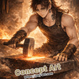 本作では、距離感と静けさを重視しています。キルケー自身は動かず、魔法陣も発動中のようには見えません。すでに結果だけが残っている状態を描くことで、場面全体に避けられない印象を与えています。