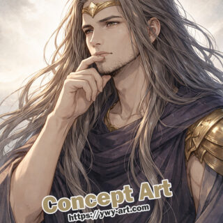 Keep the character’s tones clean and controlled. Avoid overly strong contrast on the armor to maintain the calm presence of Crius.
