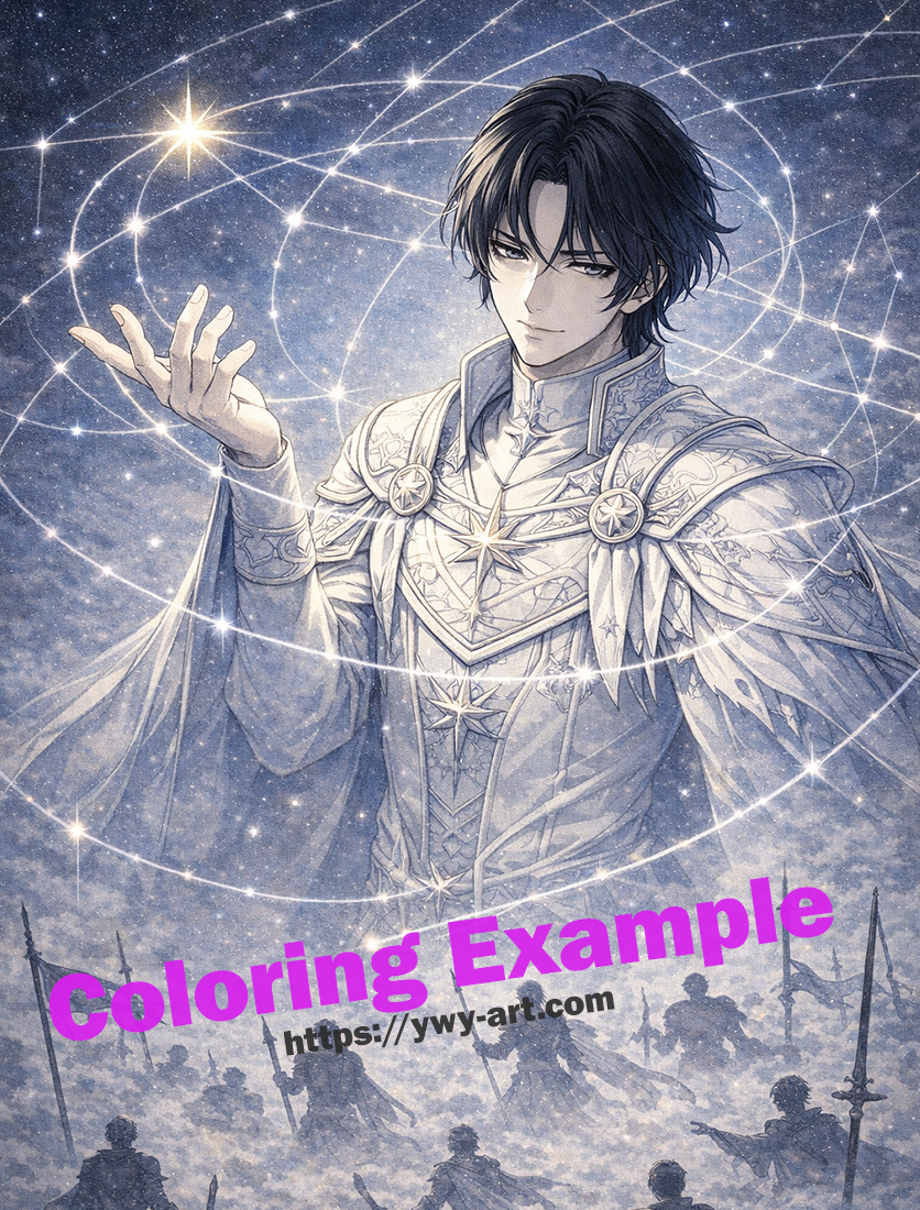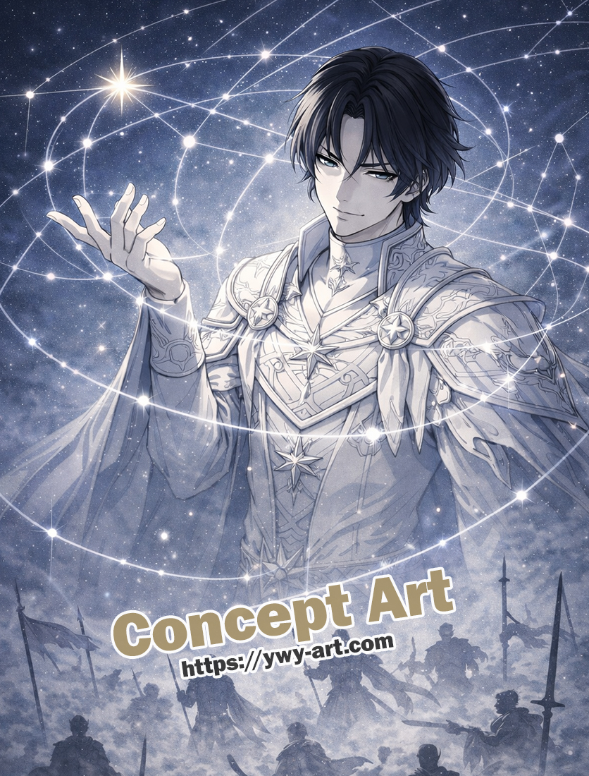 | Visual Keywords | Orbit lines, constellations, calm expression, celestial patterns |
