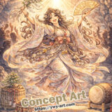 流れる衣装、神聖な武器、そして華やかな装飾が重なり合い、ダイナミックで塗り応えのある構図となっています。