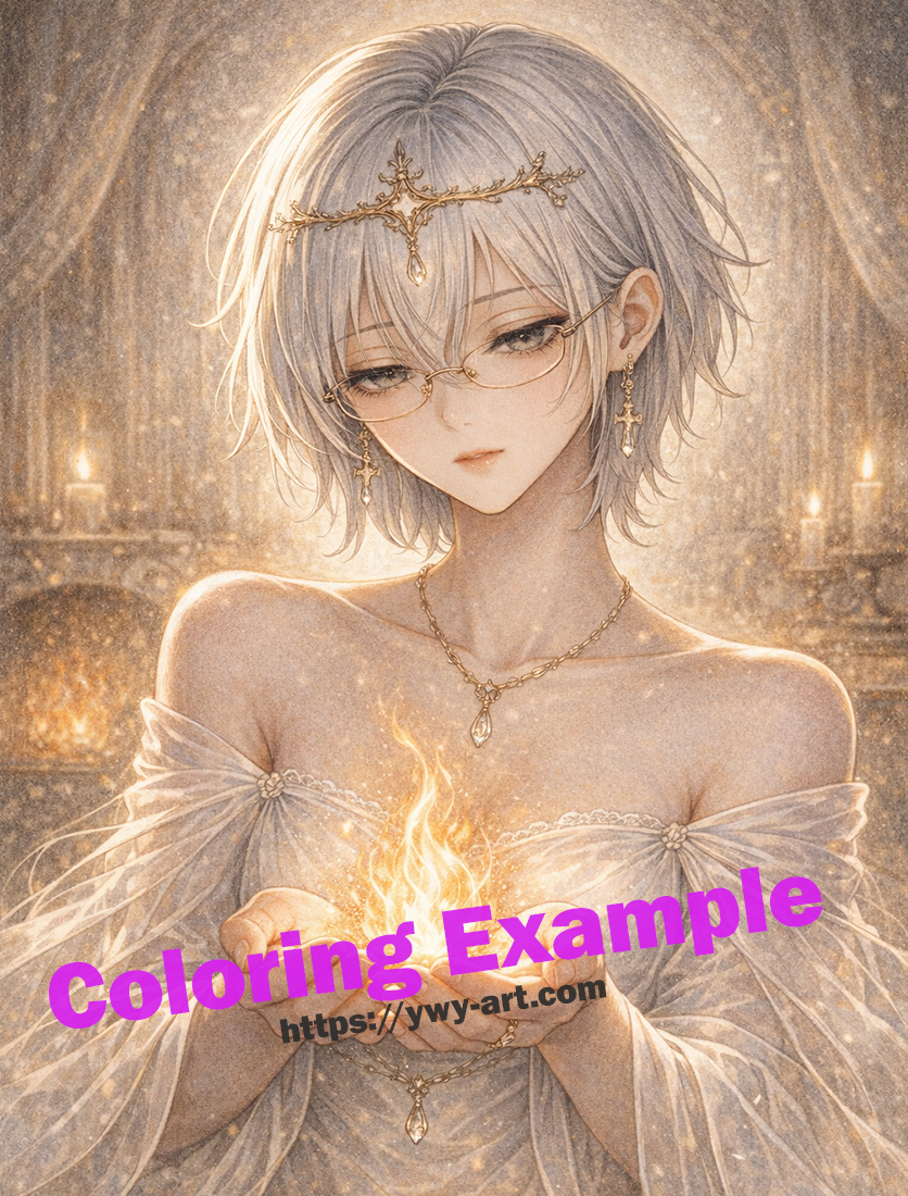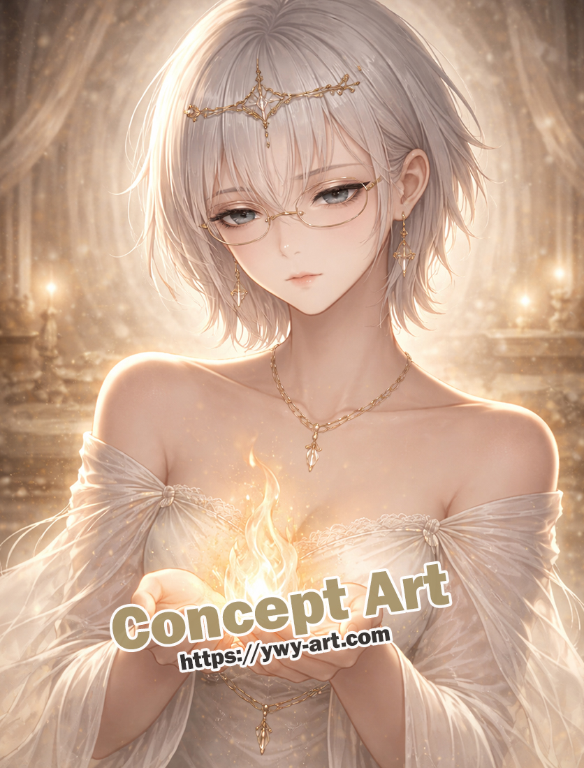 | Visual Keywords | Sacred flame, soft light, white attire, gentle glow, circular motifs |