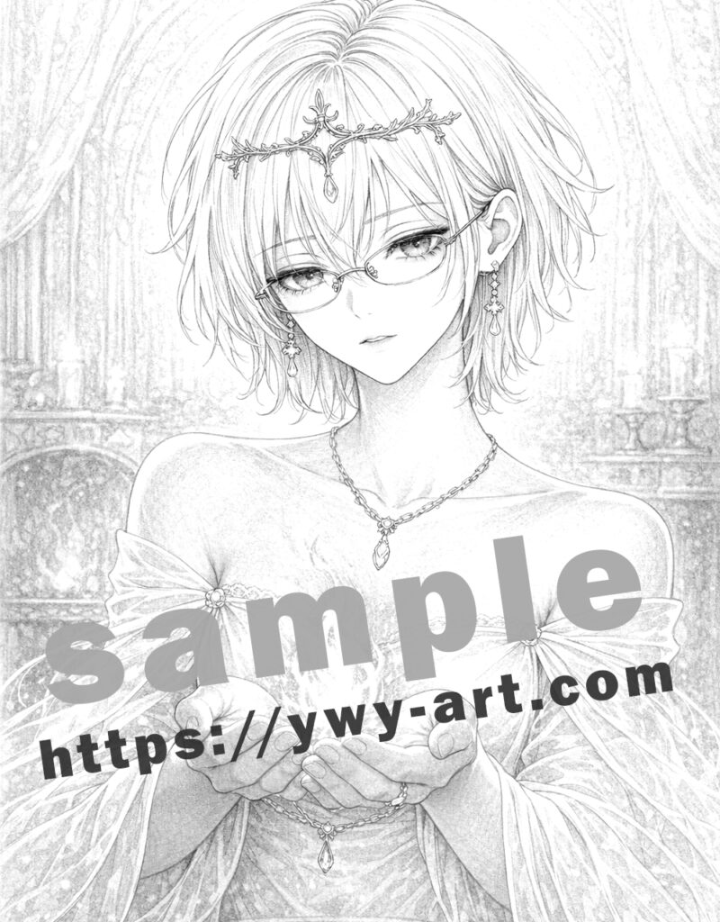 髪や衣装は白や薄いグレーを基調にして、光を残すように塗ることで神聖さが強調されます。