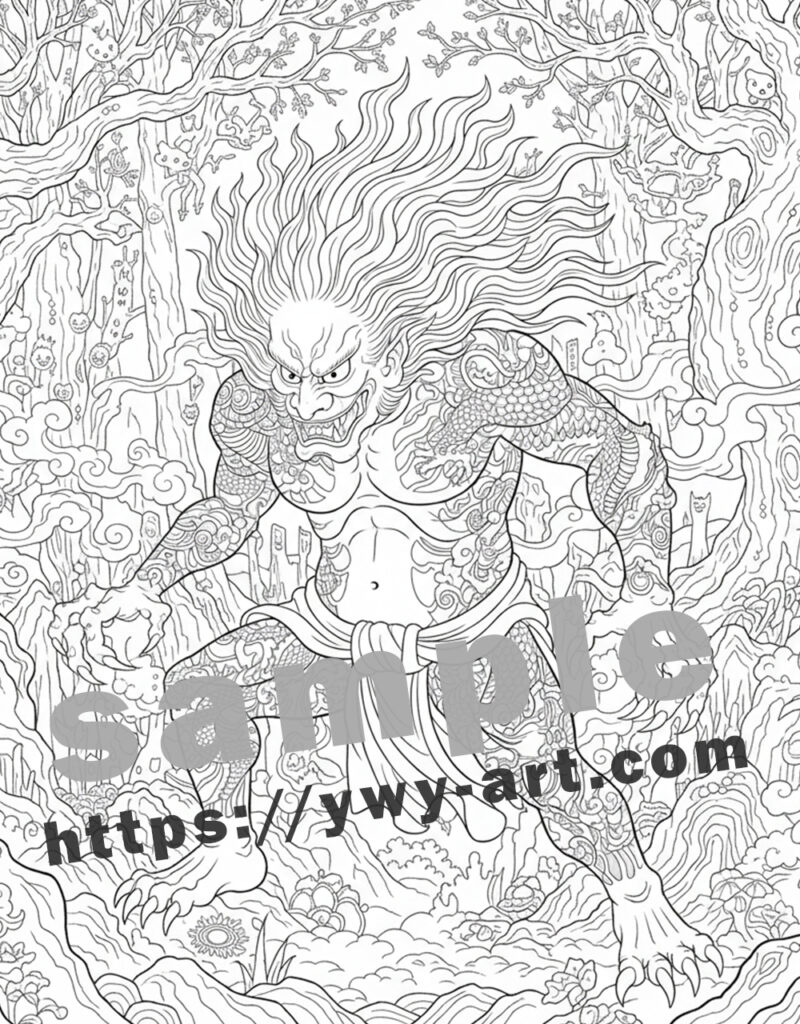 Forest Warden of the Cursed Woods | Dark Yokai Tattoo Coloring Book Vol.1