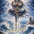 Artists can experiment with contrasting tones between the divine warrior, the spectral army behind him, and the stormy battlefield environment.