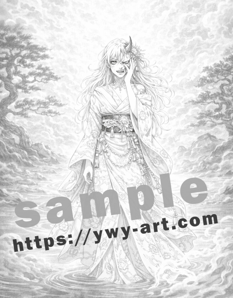 角は鋭く伸び、 笑みは歪み、 その視線はすべてを見透かすように鋭く突き刺さります。
