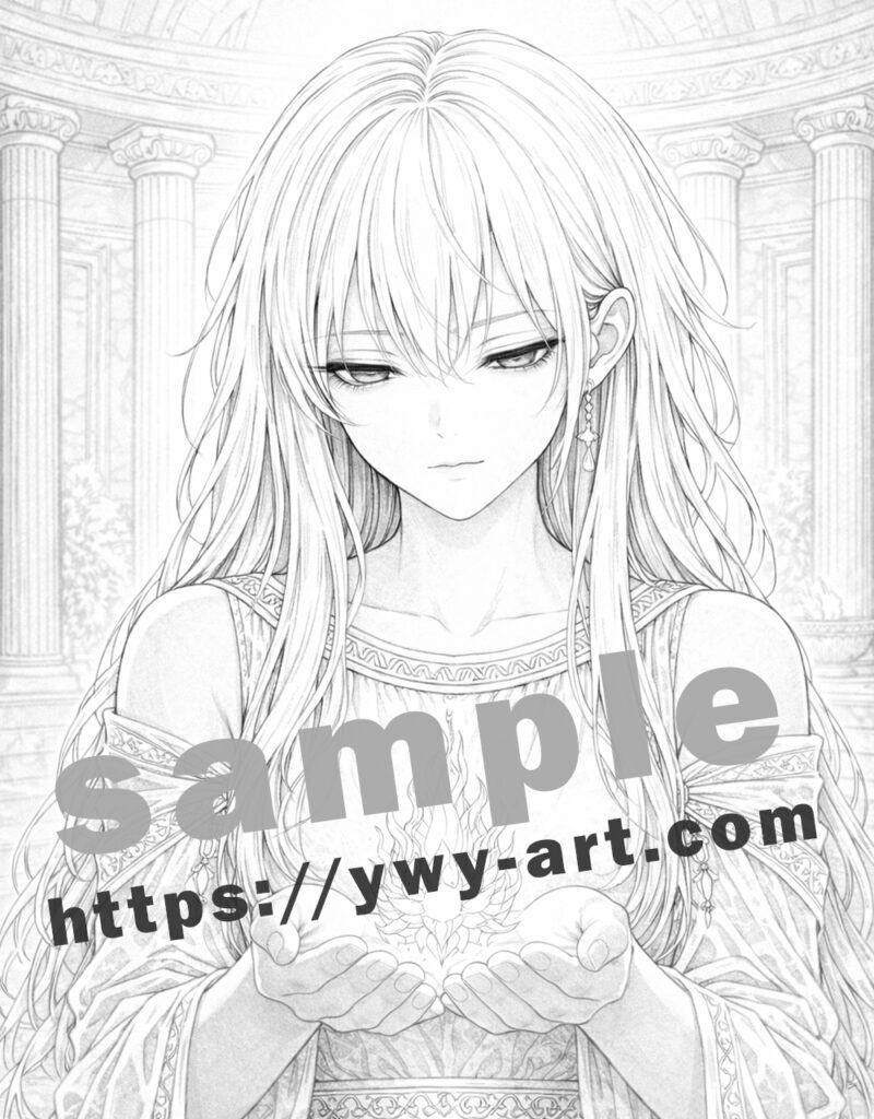 背景や衣装は炎よりも控えめな色でまとめることで、視線を自然に中央へ誘導できる。全体として「動かない強さ」を意識すると、この作品の魅力が引き出しやすい。