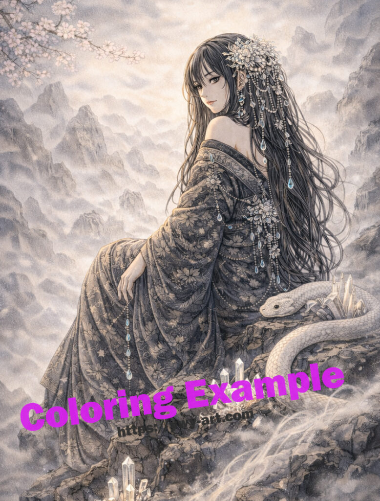 Iwanagahime | Japanese Mythology Tattoo Coloring Book Gods & Divine Spirits