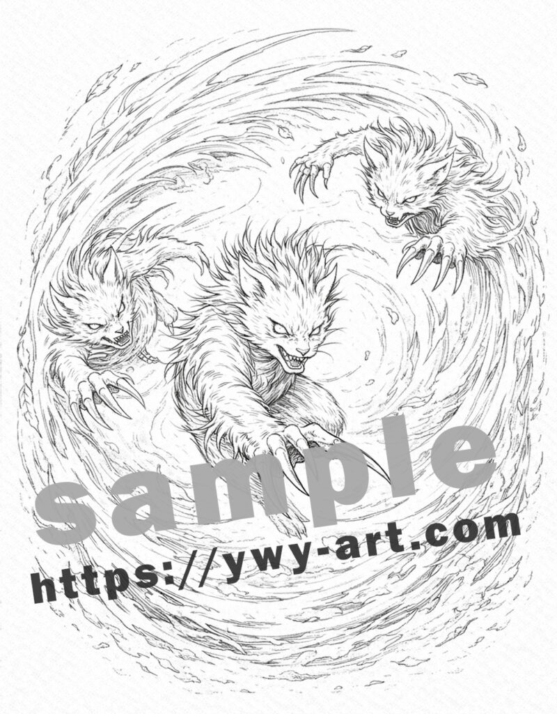 鎌鼬は「見えない力」の象徴です。 風の流れ、瞬間の動き、そして目に見えない存在を想像しながら、 あなた自身の色でこの世界を完成させてください。