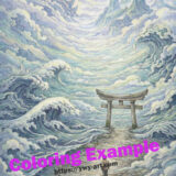 細密な描写と広い余白のバランスにより、自由な表現と塗りやすさを両立した一枚となっています。