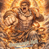 雷神は日本神話に登場する雷の神であり、太鼓を打ち鳴らすことで雷鳴と稲妻を生み出す存在として知られています。その力は圧倒的で、ひとたび現れれば大地すら震わせるとされています。