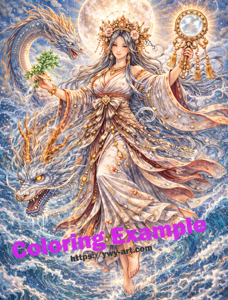 Tamayorihime | Japanese Mythology Tattoo Coloring Book Gods & Divine Spirits