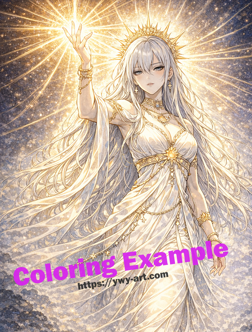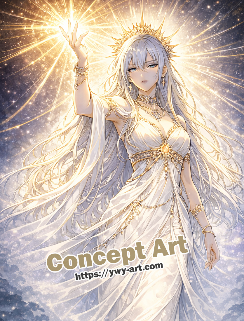| Visual Keywords | Radiance, halo, flowing white hair, glowing particles |