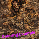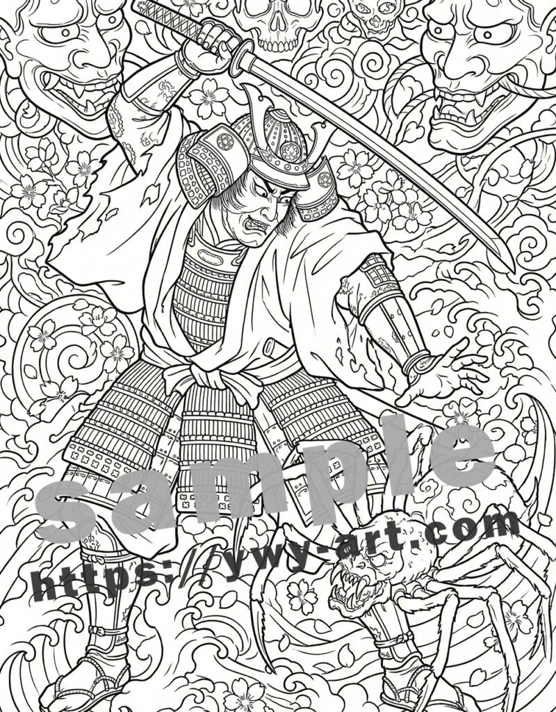 The composition draws inspiration from traditional Japanese tattoo art and Ukiyo-e, creating a bold and dynamic atmosphere filled with tension and movement. Every line is carefully designed to offer both visual impact and a satisfying coloring experience.