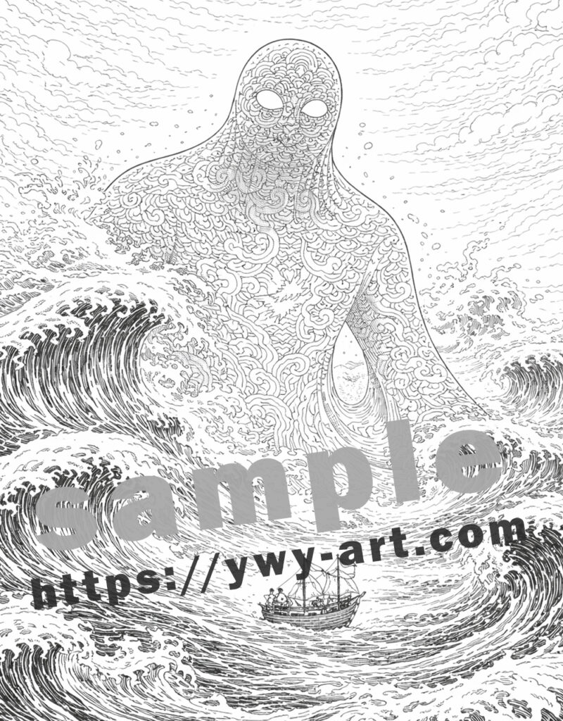 海坊主は、日本の伝承に登場する謎多き妖怪であり、穏やかな海の中に突如として現れるとされています。影のように海中から立ち上がり、その圧倒的な存在は船を一瞬で沈めるほどの力を持つと語られています。