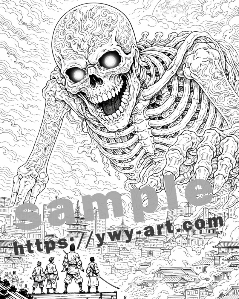 From giant skeletons that walk silently through the night, to divine dragons that command the seas, to beings that exist beyond human understanding— each illustration captures the immense scale and presence of yokai that stand far beyond human reach.