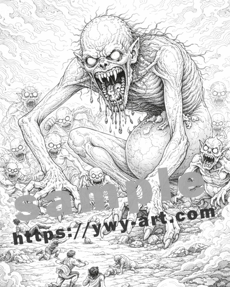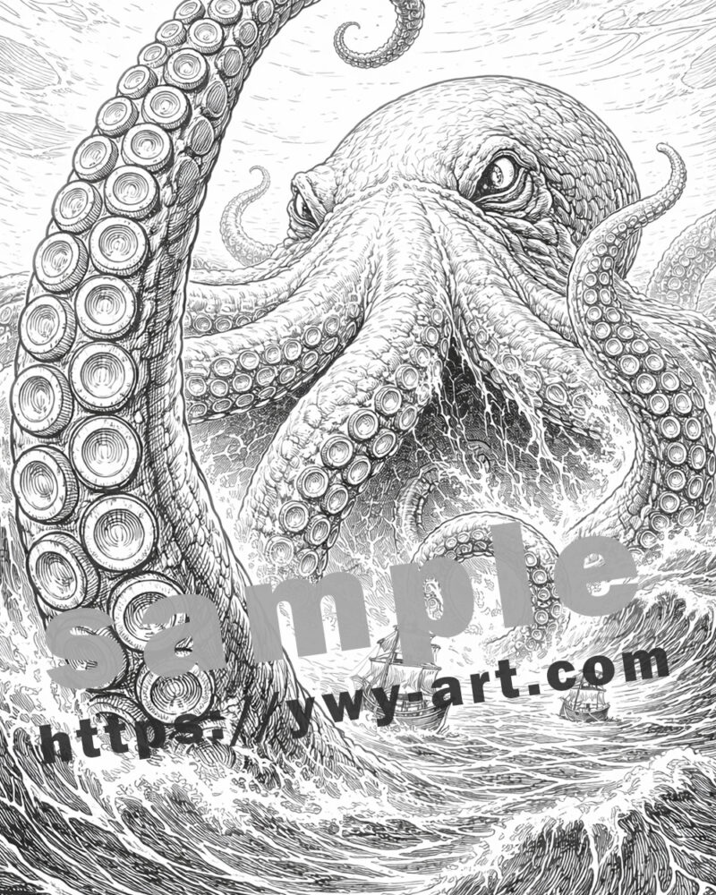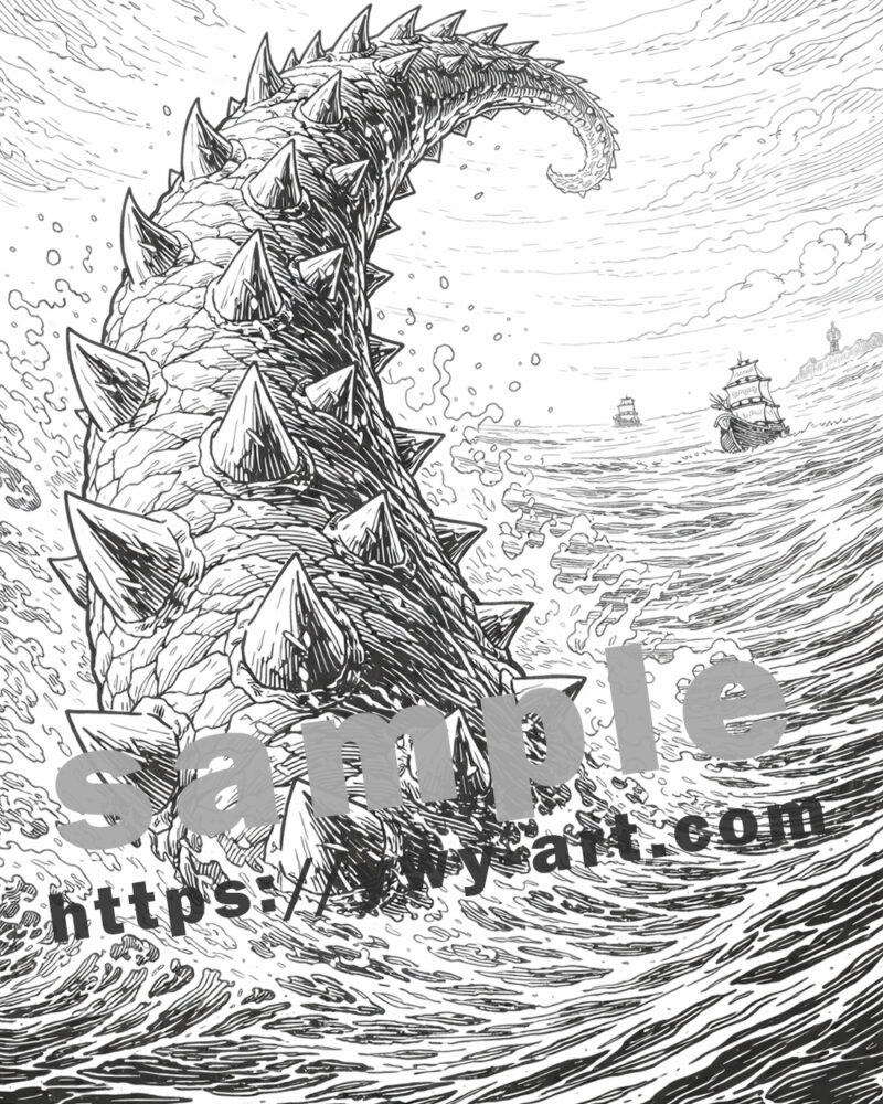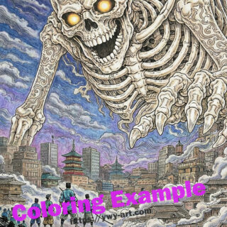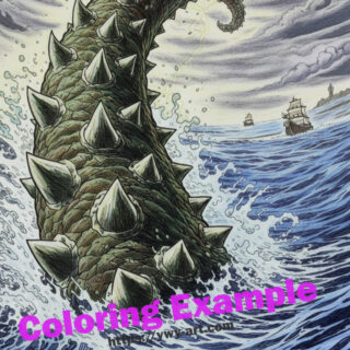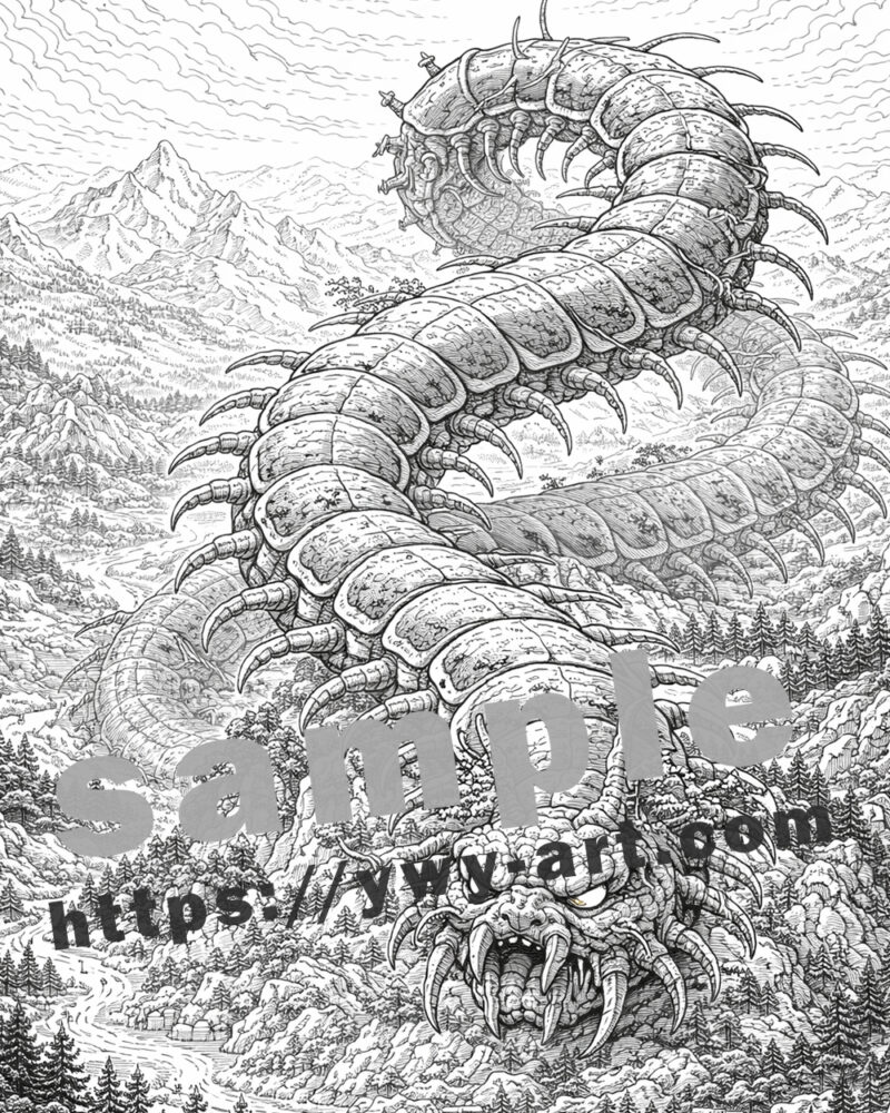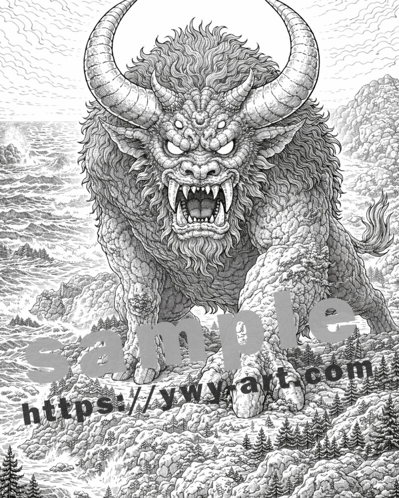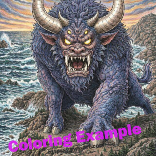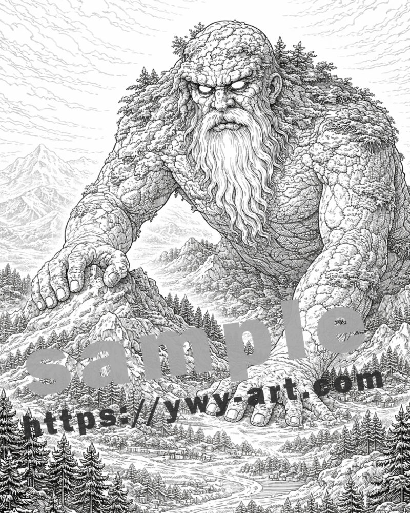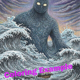 This is more than a coloring book. It is a journey into scale, myth, and quiet dread— where humans appear small, and the world feels ruled by something far greater than itself.
