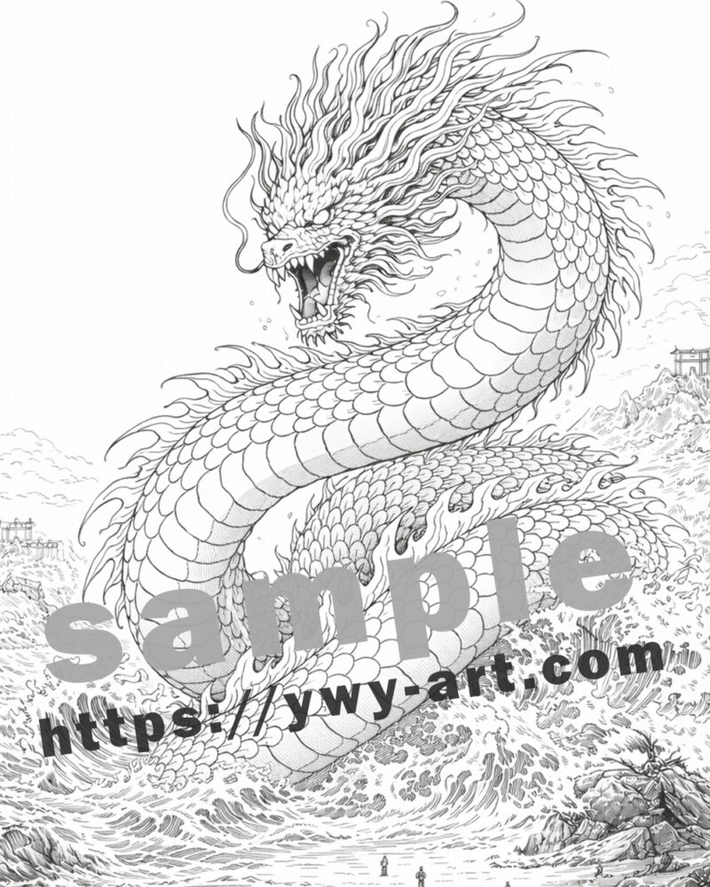 All artwork is created in bold black line art, inspired by traditional Japanese ukiyo-e composition and tattoo (irezumi) design. Clean, closed shapes and balanced detail provide a satisfying coloring experience, allowing both relaxation and creativity.
