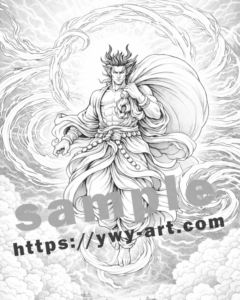 Taishakuten | Japanese Mythology Tattoo Coloring Book Gods & Divine Spirits