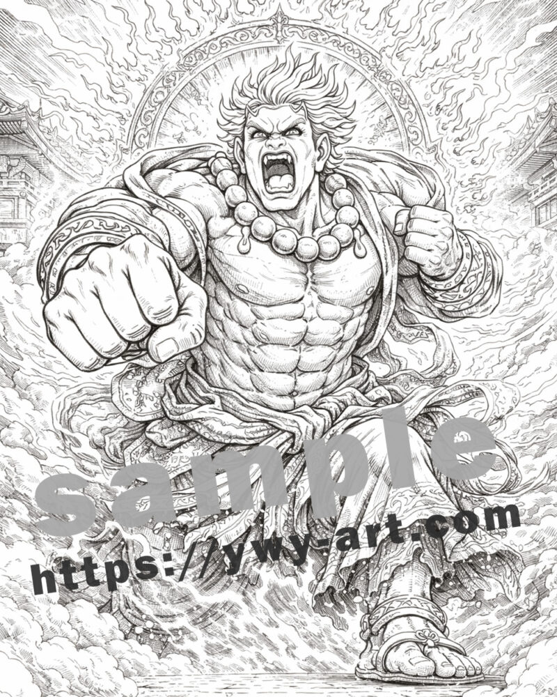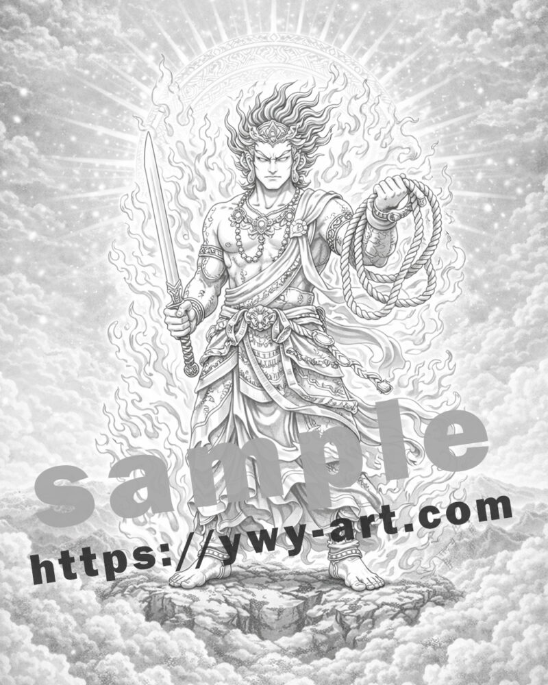 Fudō Myōō| Japanese Mythology Tattoo Coloring Book Gods & Divine Spirits