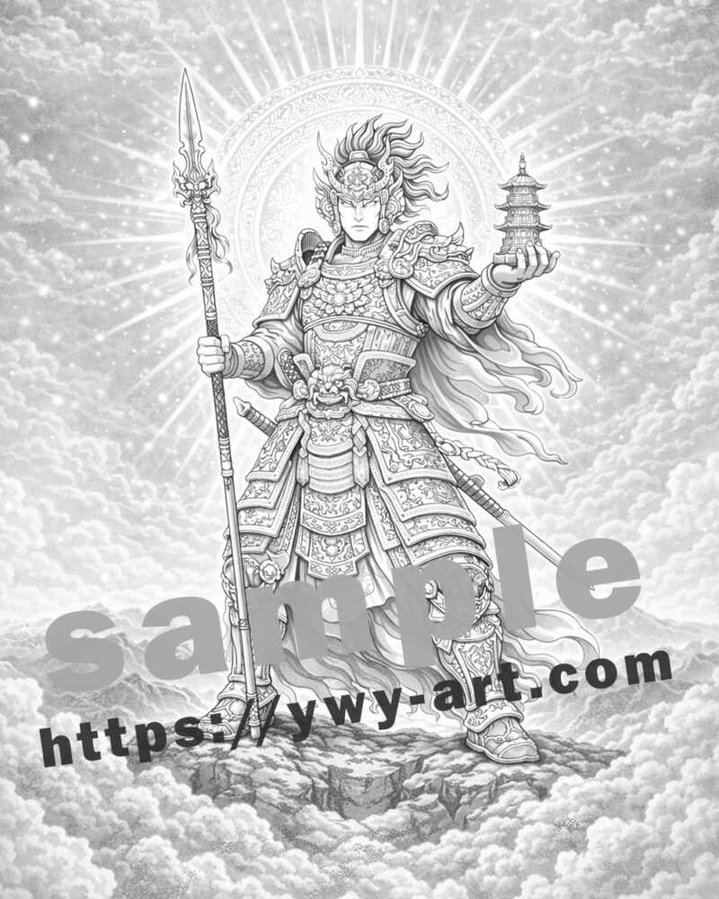 Bishamonten | Japanese Mythology Tattoo Coloring Book Gods & Divine Spirits