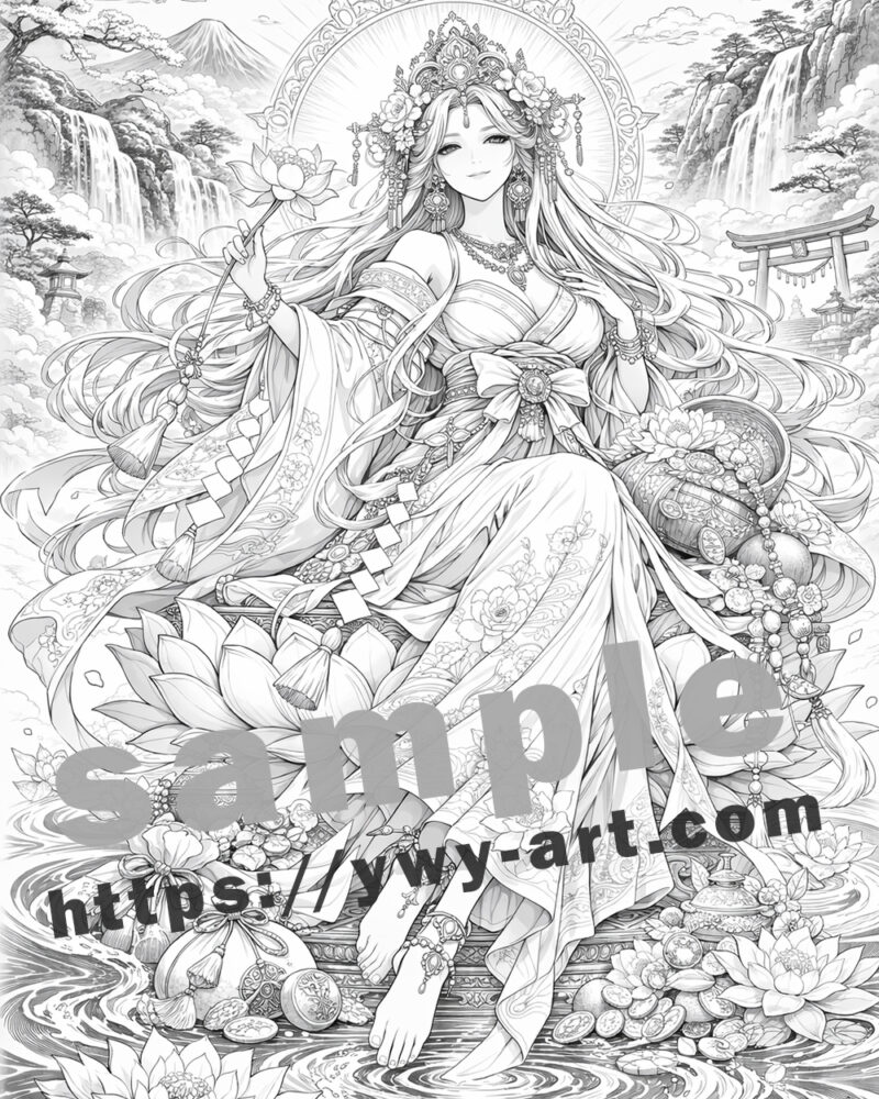Kichijōten | Japanese Mythology Tattoo Coloring Book Gods & Divine Spirits