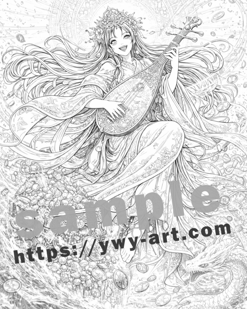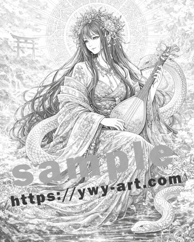 Benzaiten | Japanese Mythology Tattoo Coloring Book Gods & Divine Spirits
