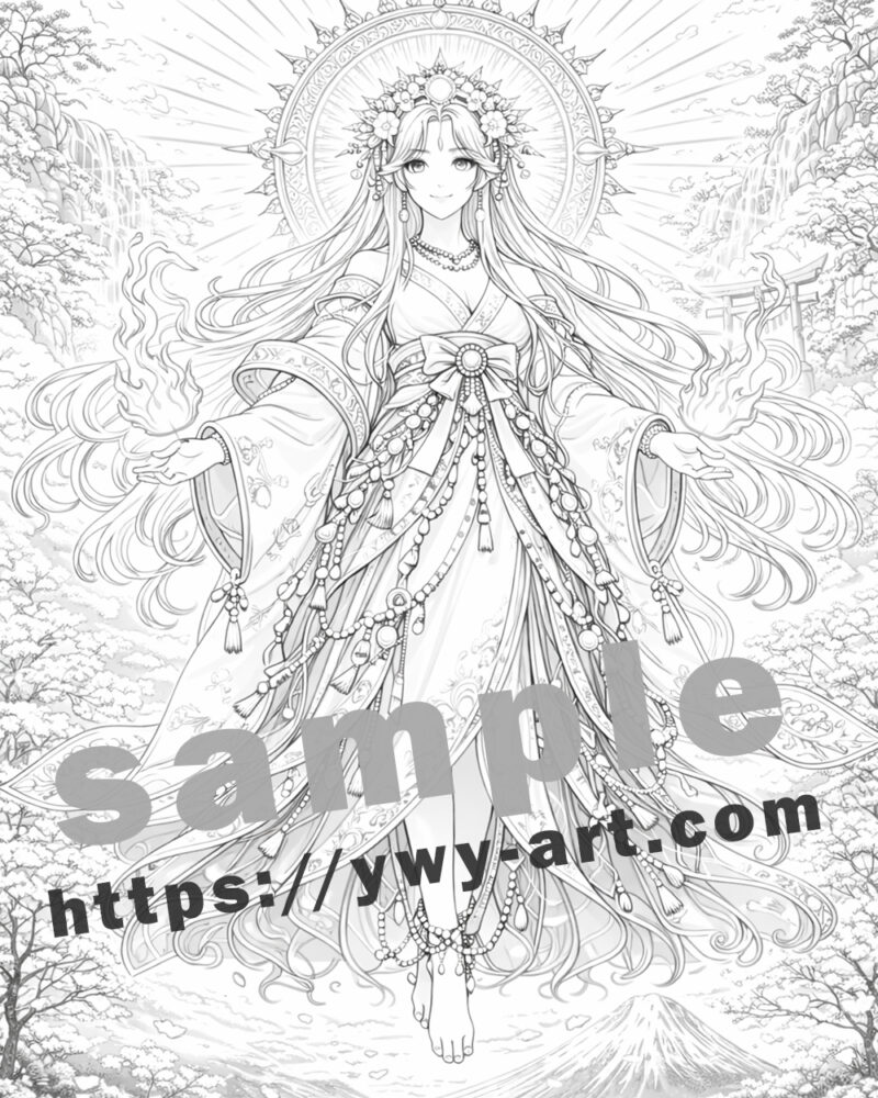 Ichikishimahime | Japanese Mythology Tattoo Coloring Book Gods & Divine Spirits