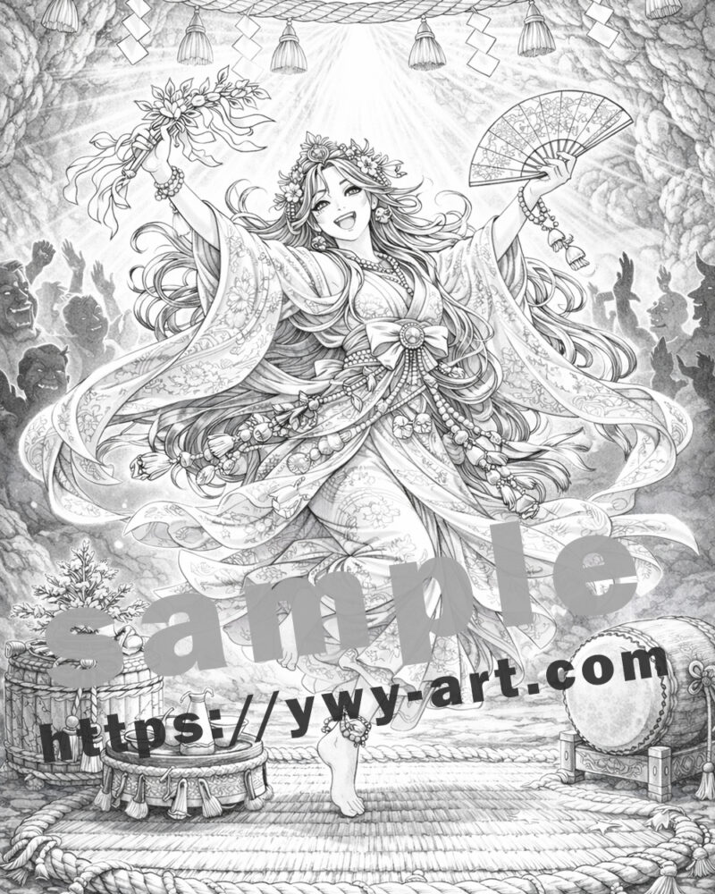 Ame-no-Uzume-no-Mikoto | Japanese Mythology Tattoo Coloring Book Gods & Divine Spirits