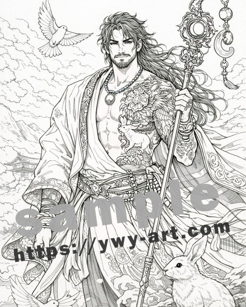 Ōkuninushi | Japanese Mythology Tattoo Coloring Book Gods & Divine Spirits