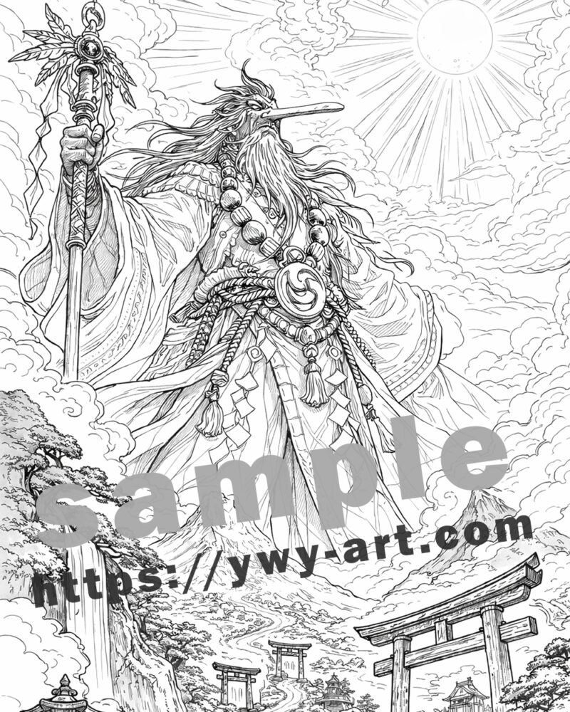 Sarutahiko Ōkami | Japanese Mythology Tattoo Coloring Book Gods & Divine Spirits
