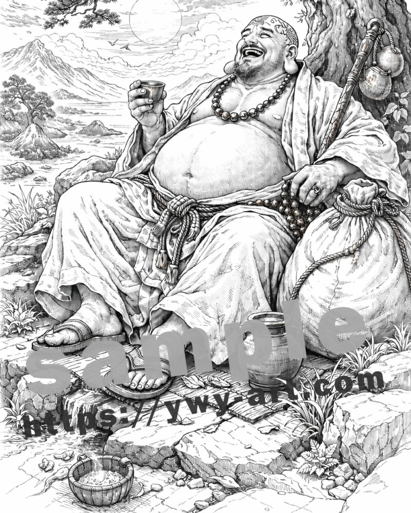 Hotei | Japanese Mythology Tattoo Coloring Book Gods & Divine Spirits