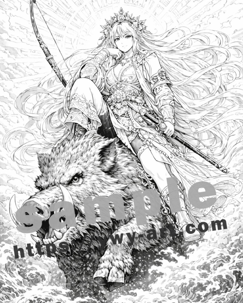 Marishiten | Japanese Mythology Tattoo Coloring Book Gods & Divine Spirits