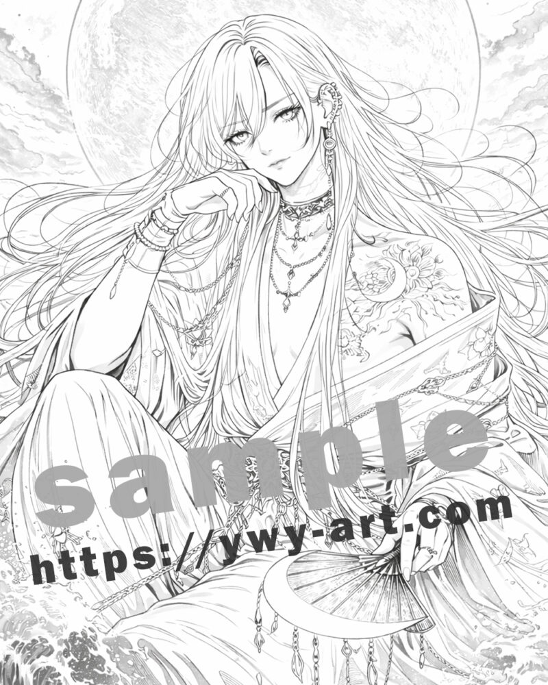 Tsukuyomi | Japanese Mythology Tattoo Coloring Book Gods & Divine Spirits