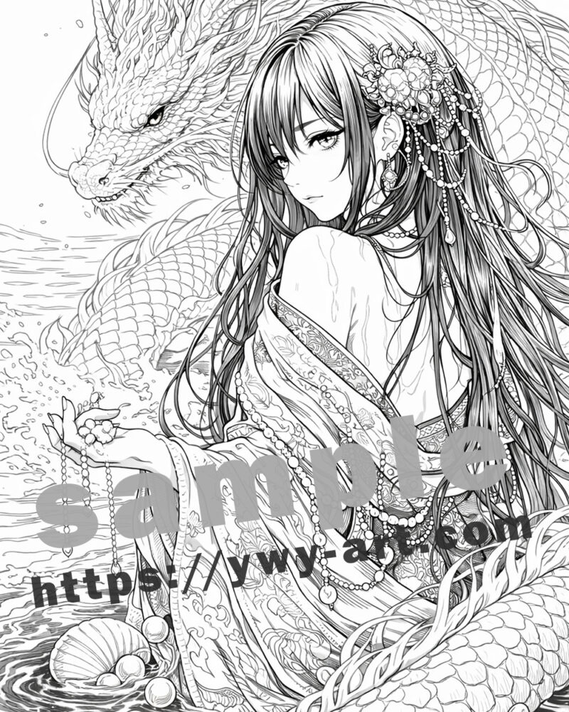 Toyotama-hime | Japanese Mythology Tattoo Coloring Book Gods & Divine Spirits