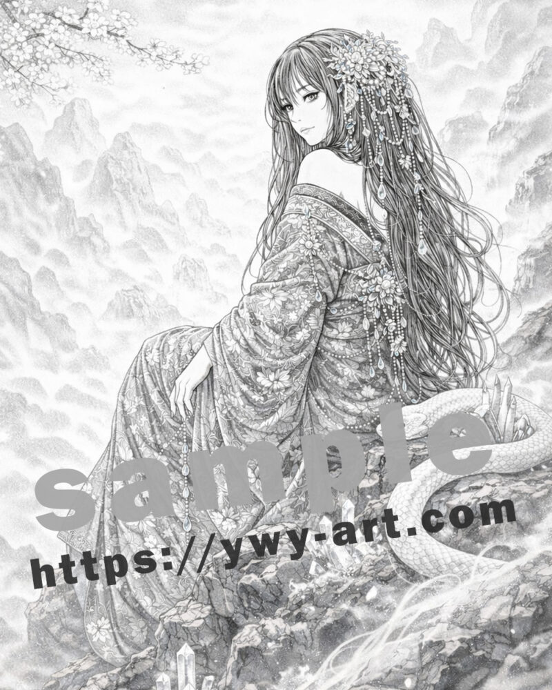 Iwanagahime | Japanese Mythology Tattoo Coloring Book Gods & Divine Spirits