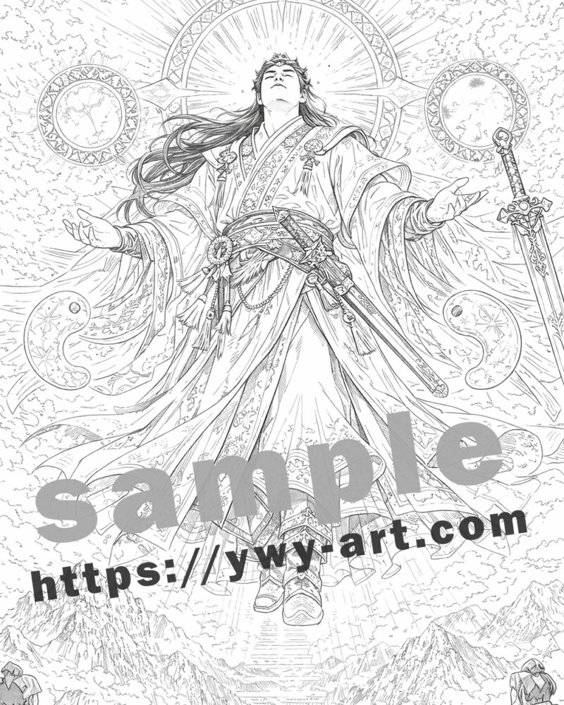 Takemikazuchi | Japanese Mythology Tattoo Coloring Book Gods & Divine Spirits