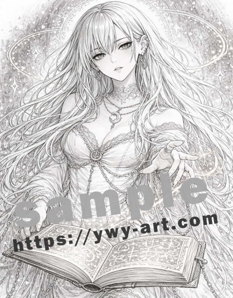 髪や衣装はあえて塗りすぎず、余白を活かすことで神秘的な雰囲気を保つことができます。