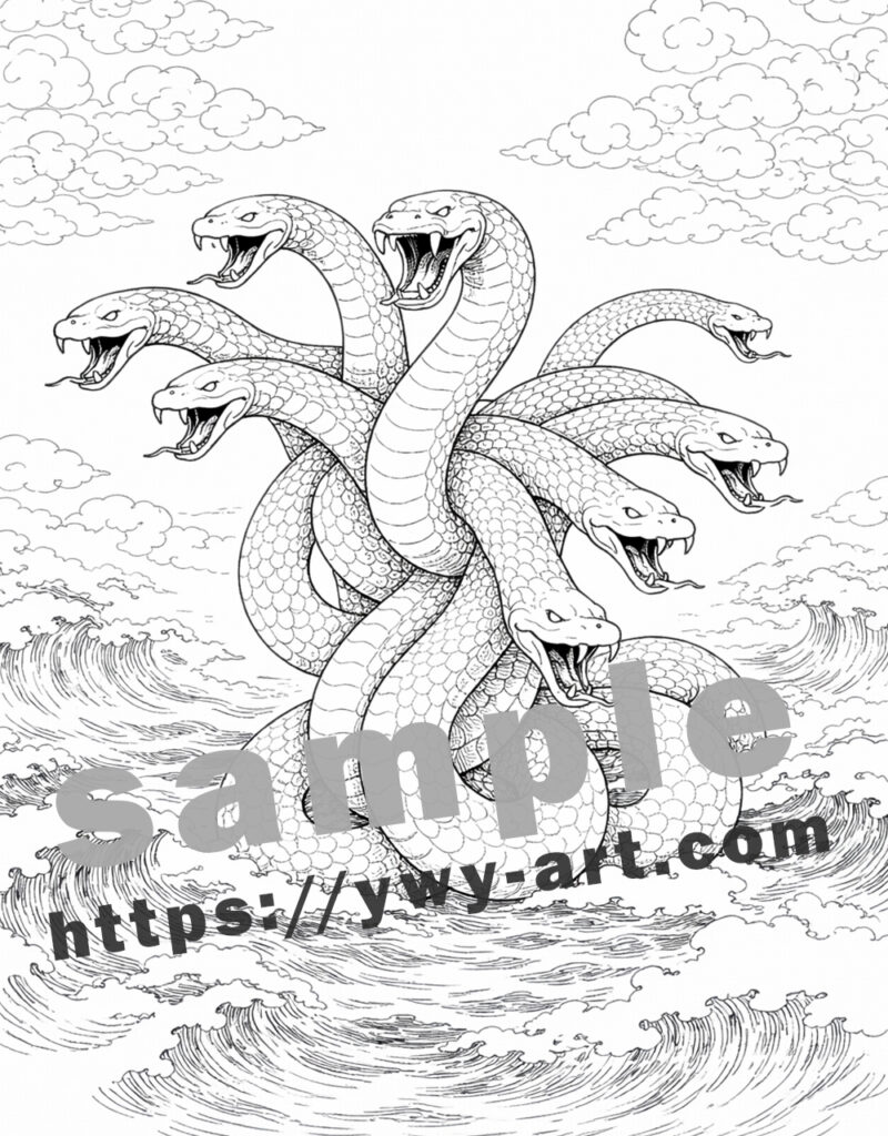 Whether you color it as a sea-born dragon, a shadowy serpent, or a mythic beast with fiery accents, Yamata no Orochi is a perfect centerpiece page—bold, cinematic, and deeply rooted in legend.